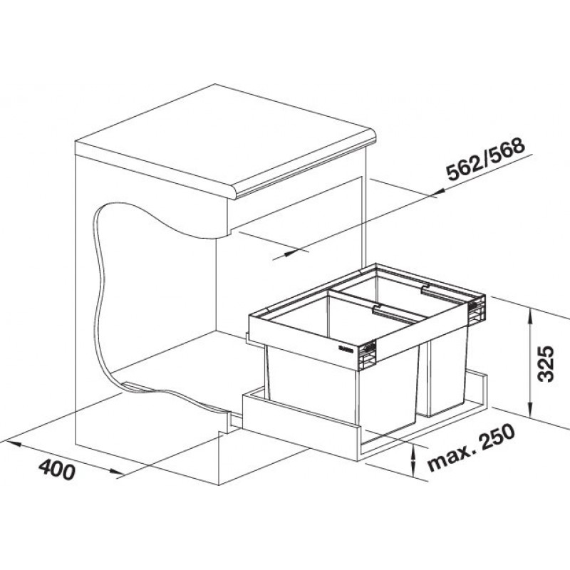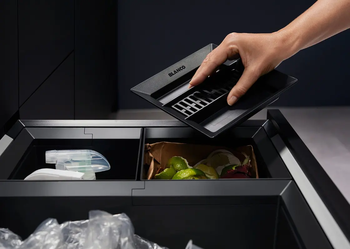 Система сортировки отходов FLEXON II 60/2 Low от Blanco воплощает философию бескомпромиссного качества, инновационного дизайна и функциональности, превращая самое активное место на кухне в продуманный, эргономичный и эстетичный центр для приготовления пищи.