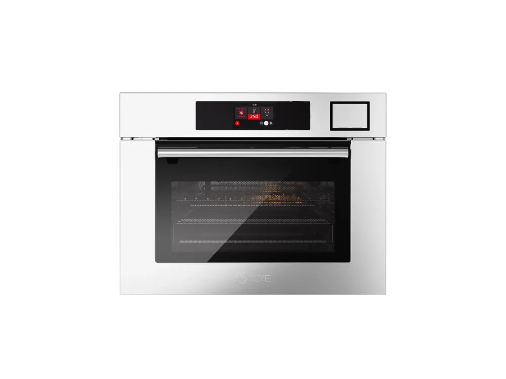 Многофункциональный компактный электрический духовой шкаф с функциями пароварки и микроволновой печи.