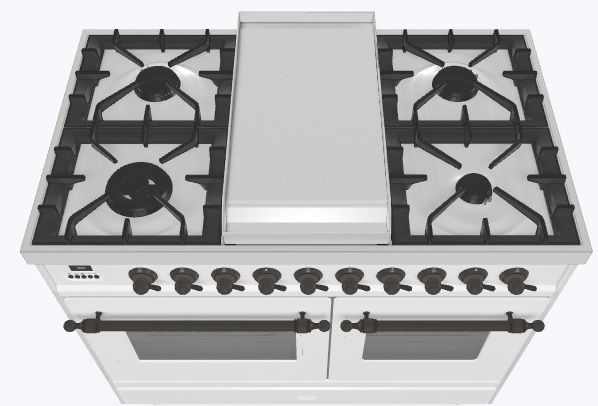 • Тип конфорок: 4 газовые конфорки, Dual конфорка, жарочная поверхность Fry Top