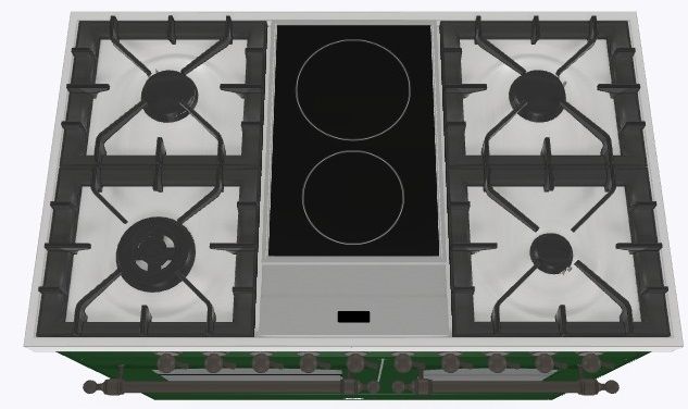 2 индукционные, 4 газовые, 1 Dual конфорка