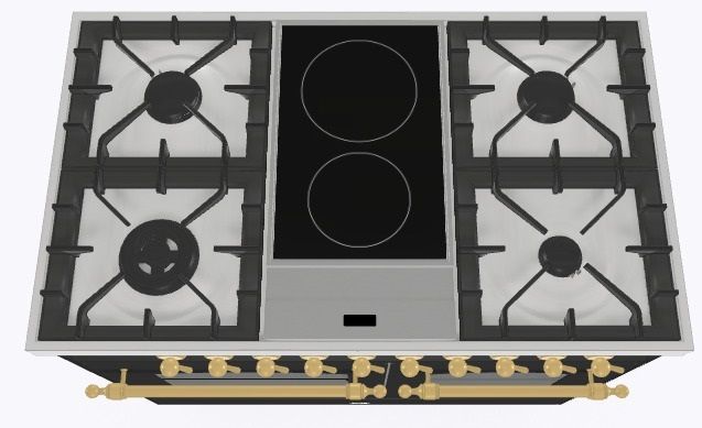 2 индукционные, 4 газовые, 1 Dual конфорка