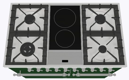 2 индукционные, 4 газовые, 1 Dual конфорка
