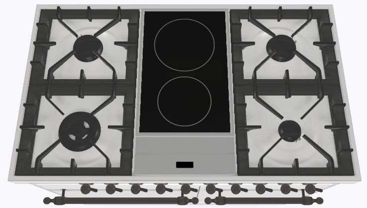 2 индукционные, 4 газовые, 1 Dual конфорка