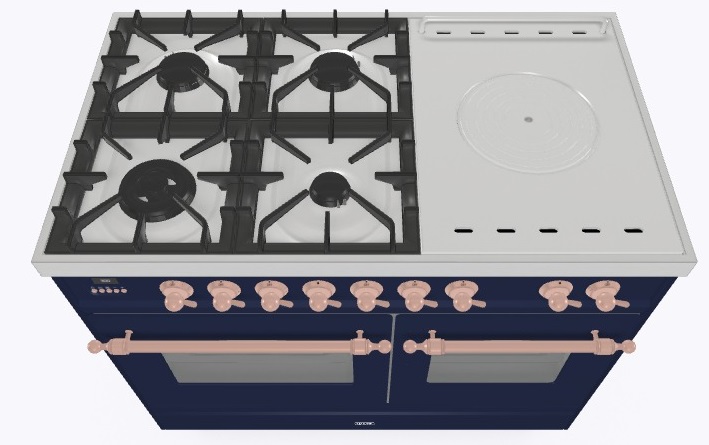 • Тип конфорок: 4 газовые конфорки, WOK конфорка, жарочная поверхность Coup de Feu