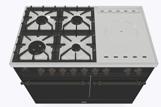 • Тип конфорок: 4 газовые конфорки, WOK конфорка, жарочная поверхность Coup de Feu
